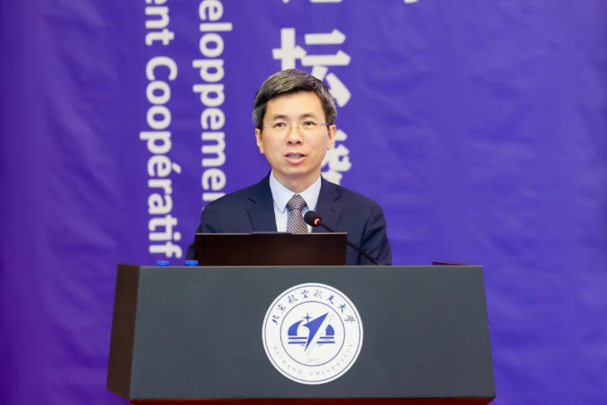 Sun Mingchun said in his speech that Beihang University had a good tradition of cooperation with France, particularly in the field of engineering education, and had cultivated many flagship projects with French universities, and that Sino-French Engineer School of Beihang University was the first Sino-French school approved by the Ministry of Education. We hope that the school will focus on training talent, creating high-quality talent with integrity and competence, fully playing its role as a node, providing opportunities and creating conditions for more exchanges and visits between Chinese and French academics, teachers and students, and attracting more outstanding international students to study in China, in order to promote mutual understanding between peoples and foster Sino-French relations through education.