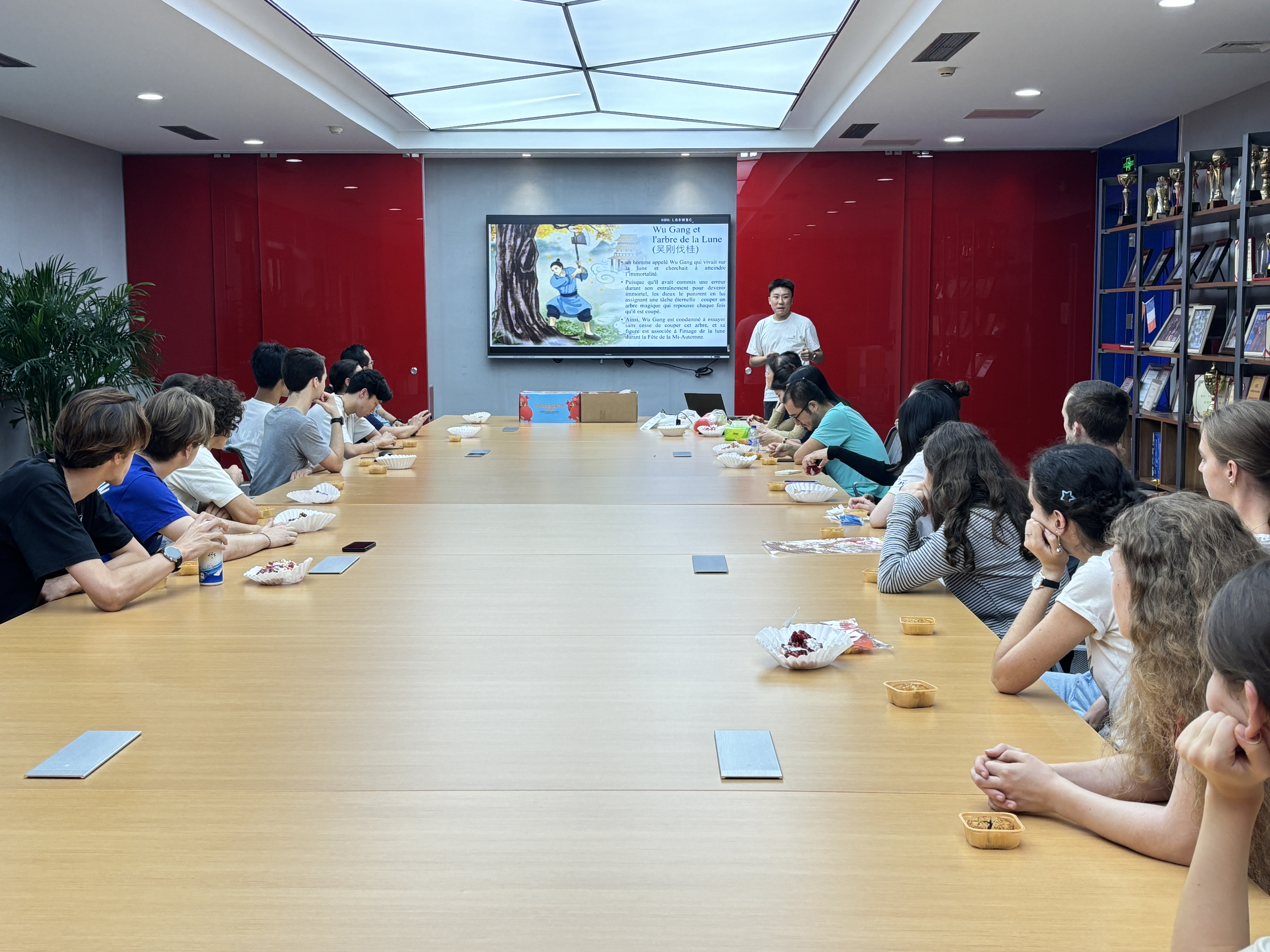 Mr. Li Meng began by outlining the history of the Mid-Autumn Festival and two tales that are connected to it: Wu Gang Fells the Laurel Tree and Chang'e Flying to the Moon. He also explained the customs and significance of the Mid-Autumn Festival. Since ancient times, there have been folk activities such as admiring lanterns and the full moon and eating mooncakes during the Mid-Autumn Festival. The Mid-Autumn Festival is a time to celebrate reunions with family members since the full moon represents reunions. The Mid-Autumn Festival is nowadays not only a cultural emblem but also symbolizes cultural heritage and expression of emotions.